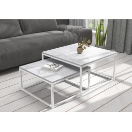 KAMA dohányzóasztal készlet acél vázzal és laminált lapból készült asztallappal. A KAMA ideális hely a kávé melletti pihenésre. Egyszerű és egyben rendkívüli design, amely minden belső térbe illik.
