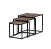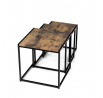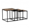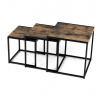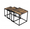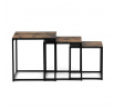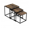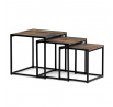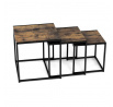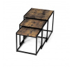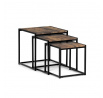 Set 3 ks přístavných nebo odkládacích stolků přinese do Vašeho domova praktičnost, variabilitu, ale také industriální šarm. Stolky můžete rozmístit jednotlivě po interiéru, kde Vám vytvoří zajímavé odkládací prvky v různých výškových hladinách. A nebo společně povytažené, kde vytvoříte velkou obdélníkovou stupňovitou odkládací plochu. Velkou výhodou je možnost zasunutí stolků do sebe, což oceníte při úklidu, skladování nebo při potřebě většího prostoru. Čtvercové desky z MDF v dekoru staré dřevo harmonicky doplňují černá kovová konstrukce, která tvoří rovněž nohy a celkově stolky zpevňuje. Stolek jistě zaujmou nejen svým nadčasovým designem, ale i variabilitou a praktičností. Desky májí rozměr 35 x 35 x 35 , 40 x 40 x 40 a 45 x 45 x 45 cm, tloušťku 1,5 cm. Konstrukce je čtvercového průřezu, na spodních plochách opatřená plastovými kluzáky. Nosnost jednotlivého stolku je do 15 kg.