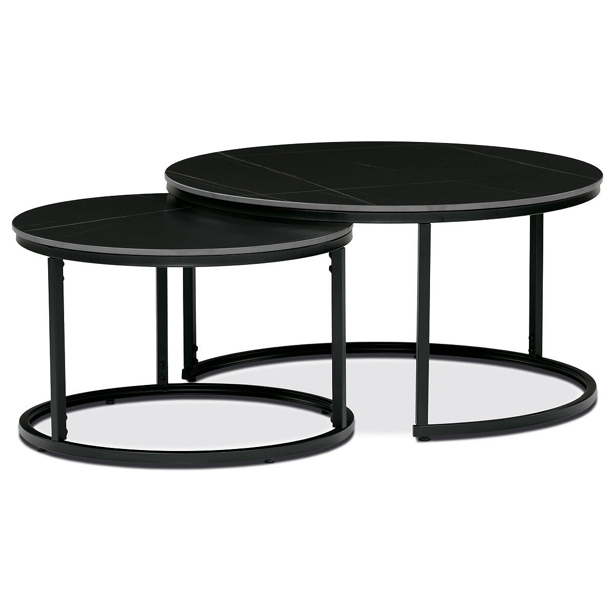 Dvojice stolů z naší nejnovější kolekce, vyrobená renomovanou značkou Autronic, krásně spojuje funkčnost s industriálním šikem. Spékaná keramická deska zdobená výrazným mramorovým dekorem představuje působivou vizuální eleganci, která doplní každý kancelářský prostor, konferenční místnost nebo domácí jídelnu. Její kruhový tvar a elegantní černý odstín jí propůjčují atmosféru sofistikovanosti, která bez námahy zvýrazní její okolí.