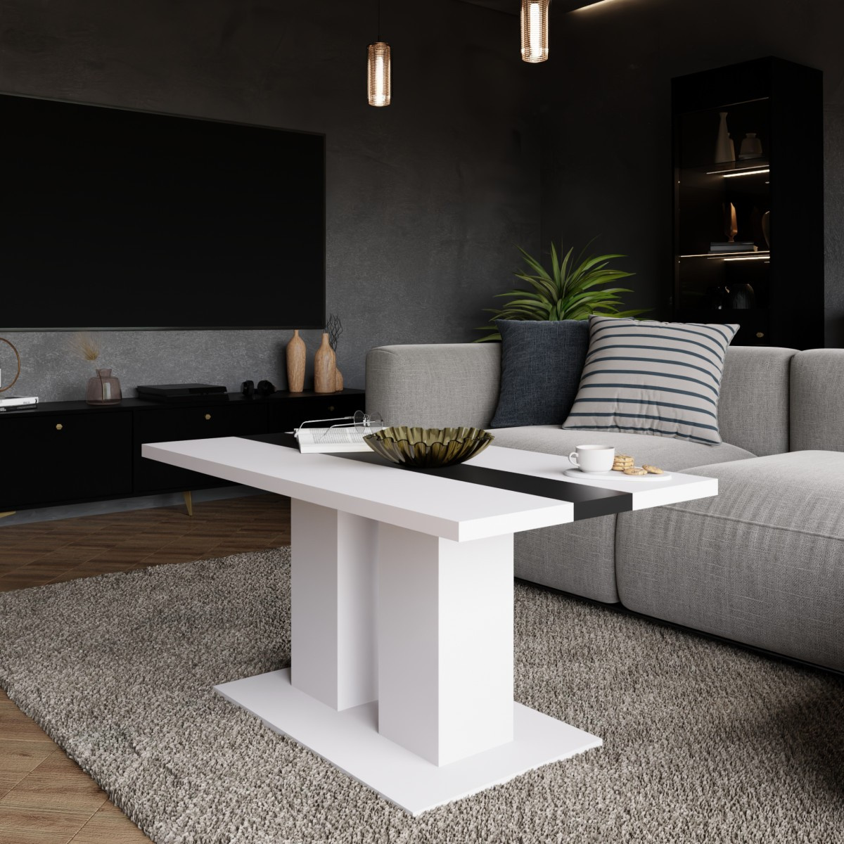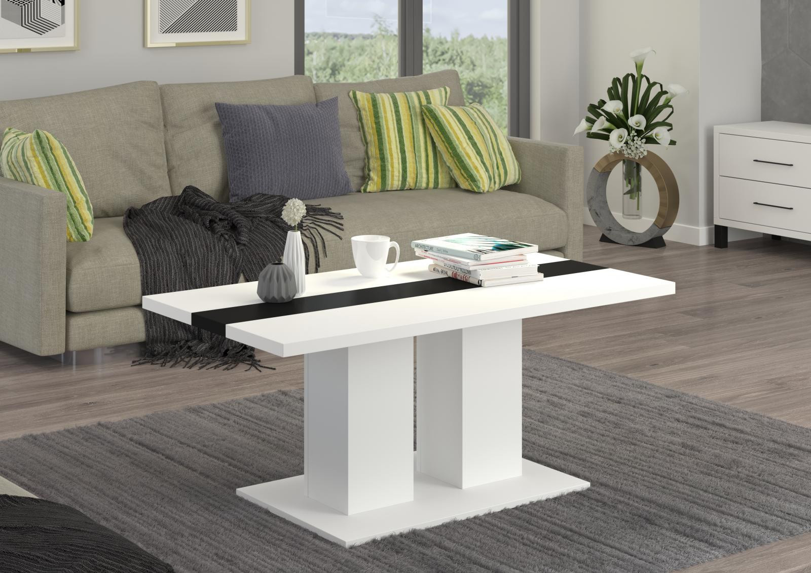 Konferenční stolek Boris je atraktivní stolek, který je vyrobený z lamina ve velmi oblíbeném a moderním dekoru bílá s černým pruhem uprostřed. Stolek je dostatečně velký na vše, co si budete potřebovat odložit. Hrnek s kávou nebo čajem, talíř, knihu, telefon, notebook, nebo klidně i unavené nohy po celodenním maratonu. Stolek je dodávaný v demontu. Součástí balení je montážní plánek včetně všech potřebných spojovacích materiálů.