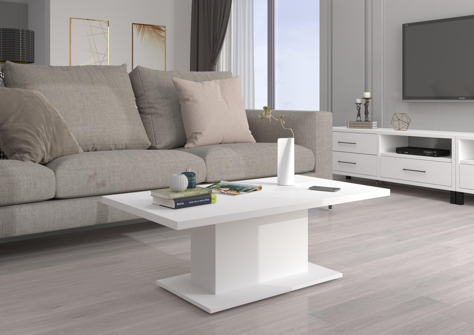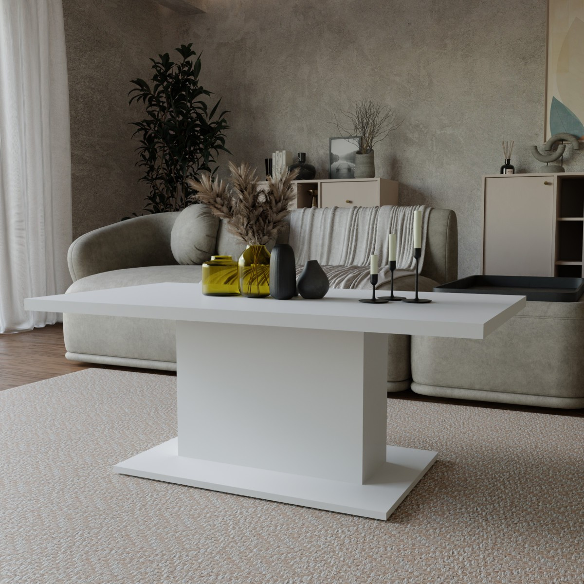 Konferenční stolek Denis je atraktivní stolek, který je vyrobený z lamina ve velmi oblíbené a moderní bílé barvě. Stolek je dostatečně velký na vše, co si budete potřebovat odložit. Hrnek s kávou nebo čajem, talíř, knihu, telefon, notebook, nebo klidně i unavené nohy po celodenním maratonu. Stolek je dodávaný v demontu. Součástí balení je montážní plánek včetně všech potřebných spojovacích materiálů. Vyobrazené doplňky a dekorace nejsou v ceně.