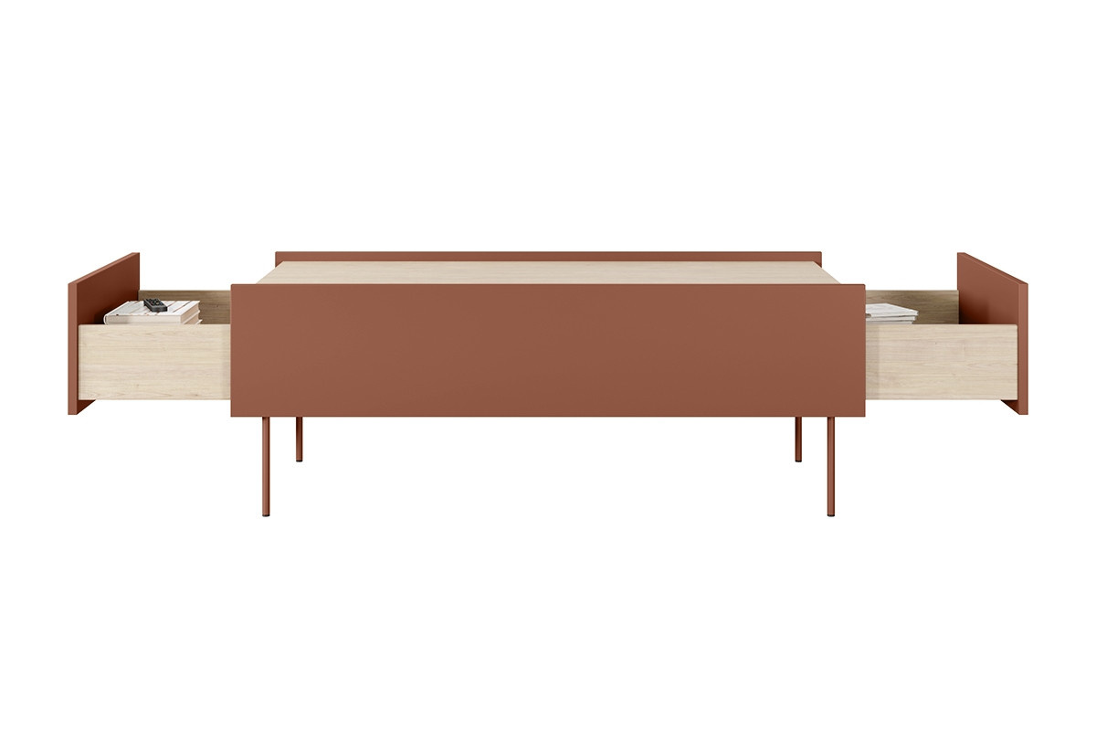 Konferenční stolek se 2 zásuvkami Desin 120 cm - keramická červená / dub nagano, šířka: 120, výška: 45, hloubka: 60, výška nohou: 20