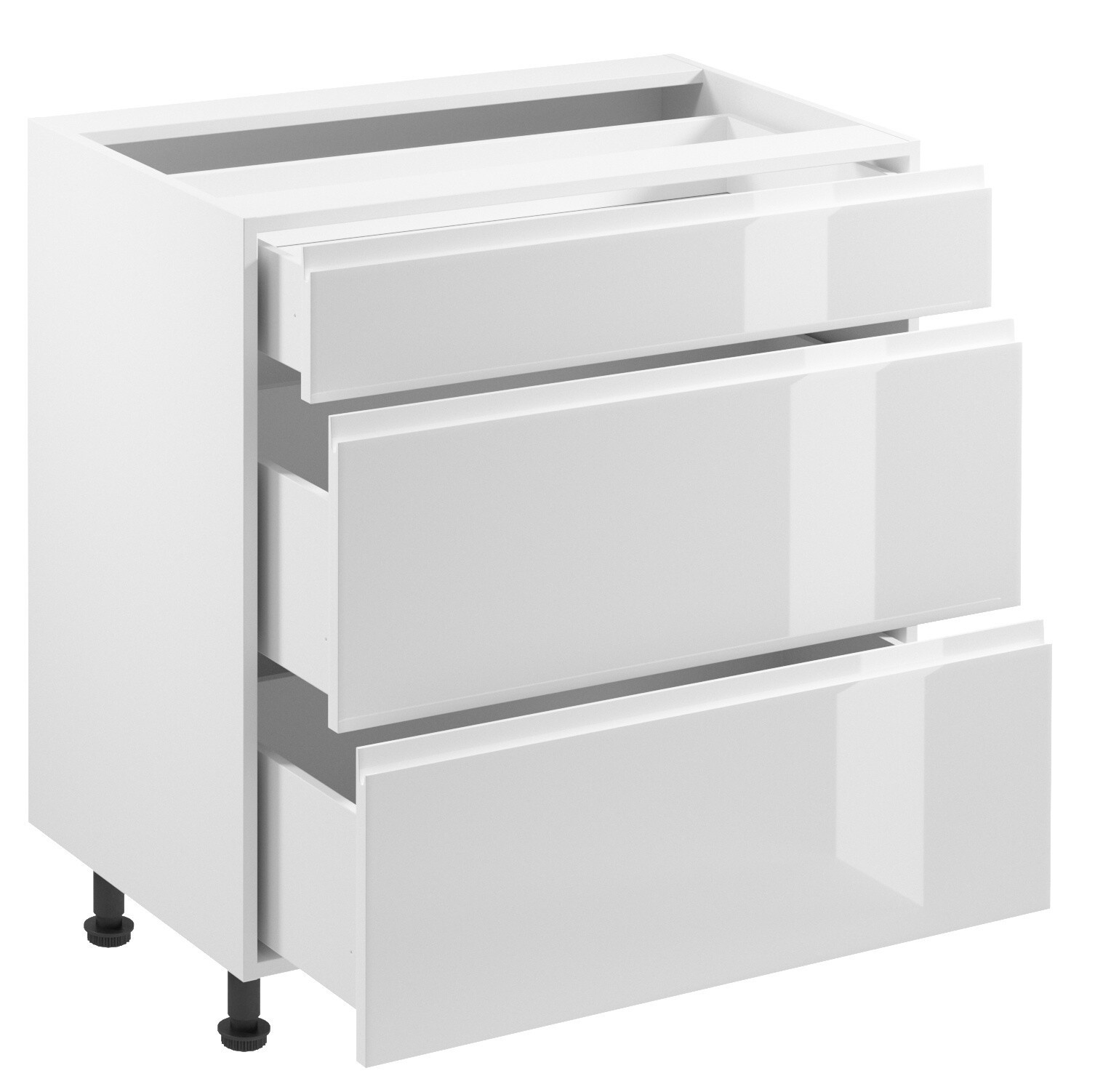 Konyhai alsó szekrény - ASPEN D80S3, Fehér/Fényes fehér