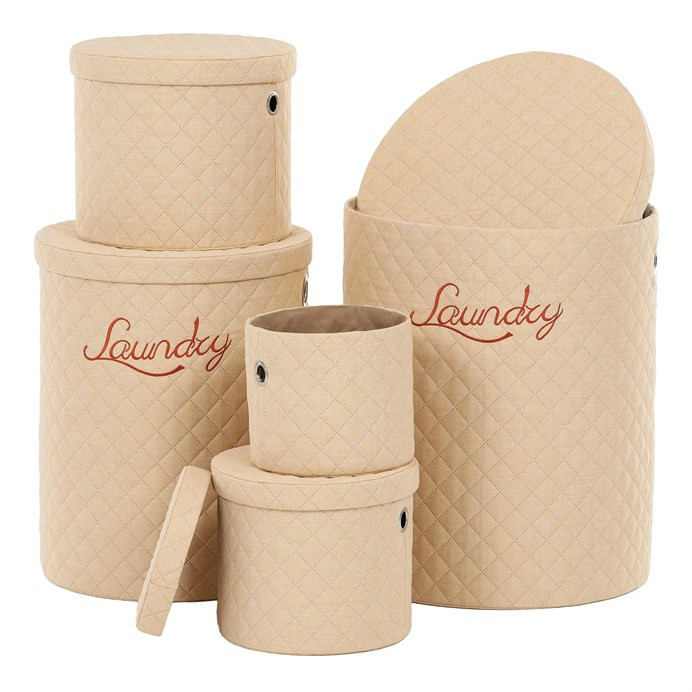 Koš prádelní - látka, kulatý, béžový, cena za sadu 5 ks
