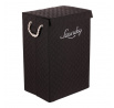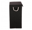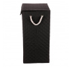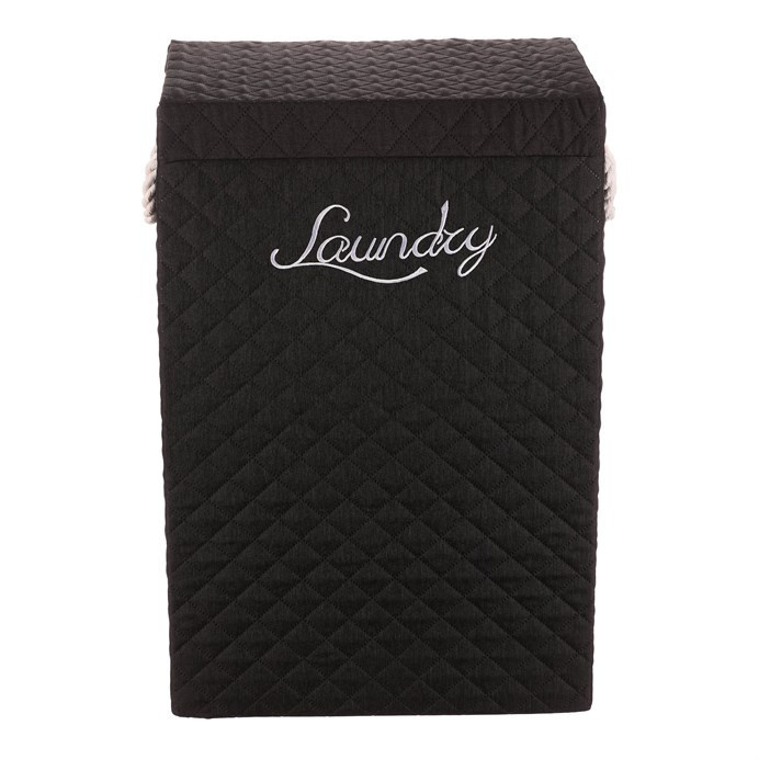 Vysoký látkový koš v černé barvě ve tvaru krabice s uchy z provázků a víkem, navíc potažený hebkou látkou, bude skvělou volbou pro každou domácnost. Praktický a stylový prostředek k tomu, jak efektivně schovat prádlo a zároveň přidat do prostoru na oko příjemný dekorační prvek.