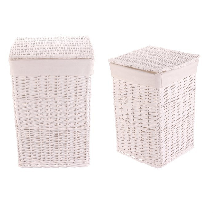 Koš prádelní - proutěný, s víkem, bílý, cena za sadu 2 ks