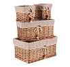 Sada čtyř různě vělkých hranatých proutěných košů v přírodní barvě nabízí elegantní řešení pro ukládání věcí nebo oblečení. Vhodné jsou zejména do regálů, přičemž každý koš je vyplněn lehce snímatelnou šedou látkou s mašličkou, která je tak snadno udržovatelná. Praktická a zároveň elegantní volba pro organizaci v domácnosti, která přinese do prostoru uspořádanost a čistotu.