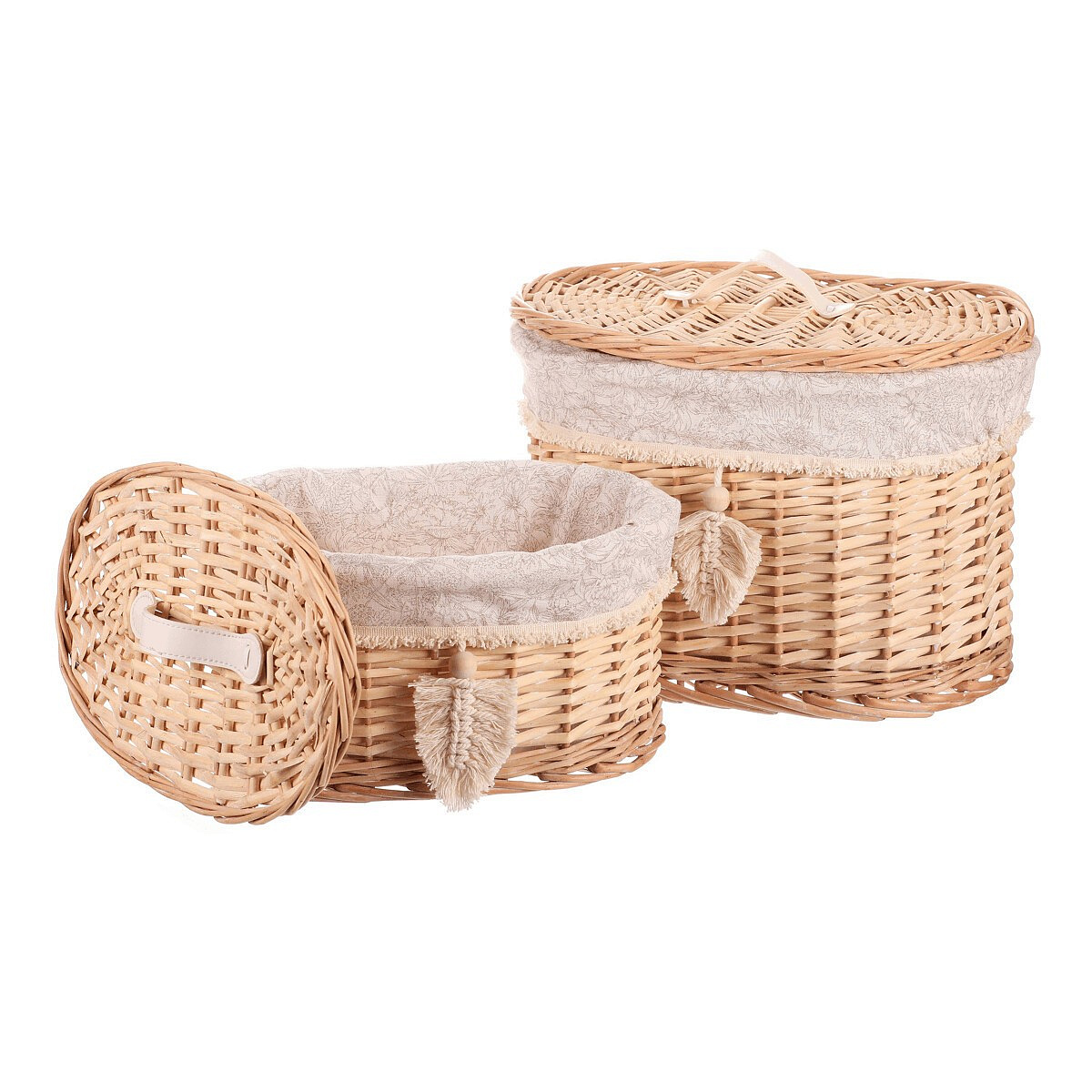 Udržujte pořádek snadno a efektivně s tímto elegantním kulatým proutěným košem v přírodní barvě. Sada dvou velikostí se skvěle hodí do každé skříně nebo do regálu, přičemž víko dodává na estetičnosti a praktičnosti. Vnitřní látka je lehce snímatelná, což usnadňuje její údržbu.