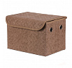 Elegantní látkový koš s víkem v hnědé barvě a obdélníkovém tvaru dodá vašemu úložnému prostoru styl i pořádek. Koženkový povrch působí vkusně a víko se zavírá jednoduše pomocí suchého zipu. Po bocích najdete praktické otvory pro ruce, které usnadňují přenášení. Ideální pro přehledné a vkusné uložení věcí v regálu nebo skříni.