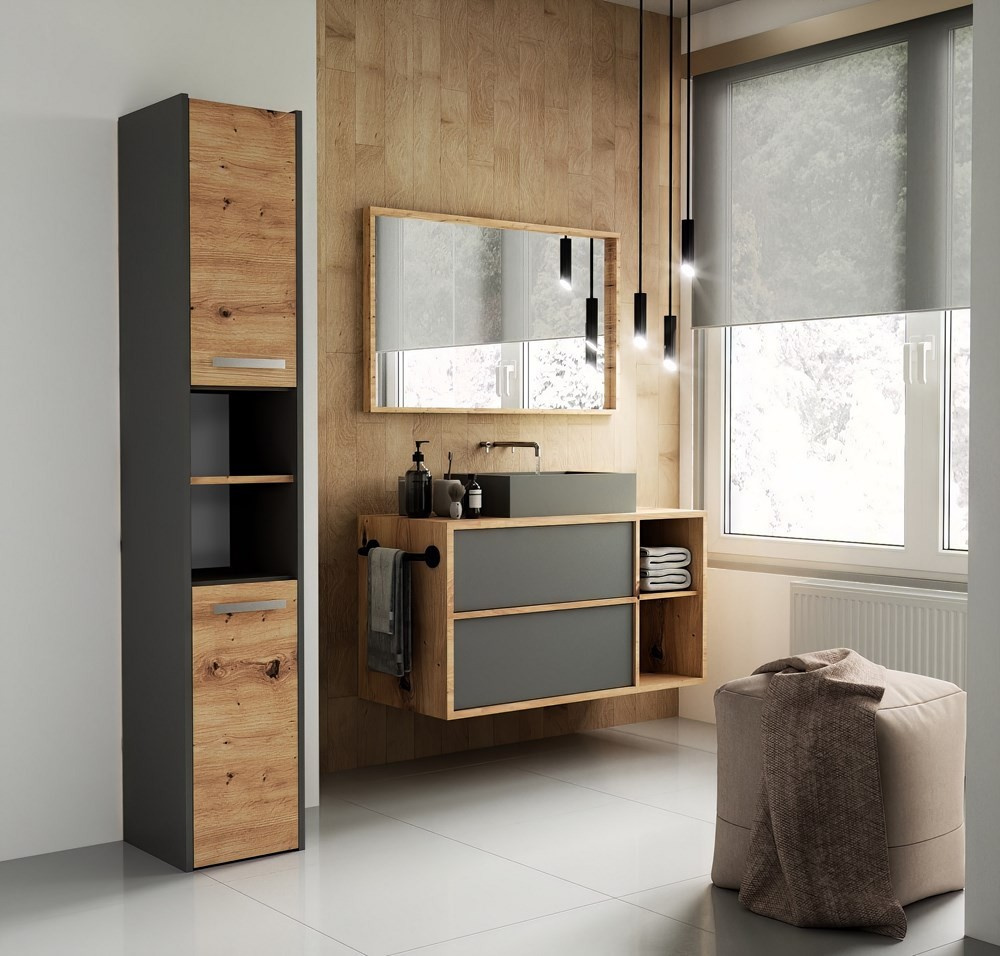 Koupelnová skříň SALY 30 2D, Dub antracit/ Dub artisan