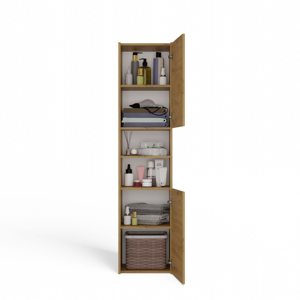 Vysokou koupelnovou skříňku Saly v minimalistickém designu ocení milovníci jednoduchosti a elegance. Je vyrobená ze snadno udržovatelného lamina, hrany jsou povrchově upravené ABS plastem - vyznačuje se vysokou mechanickou a chemickou odolností.