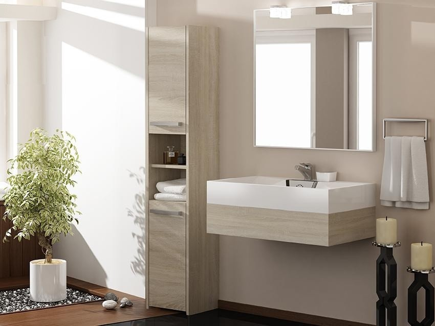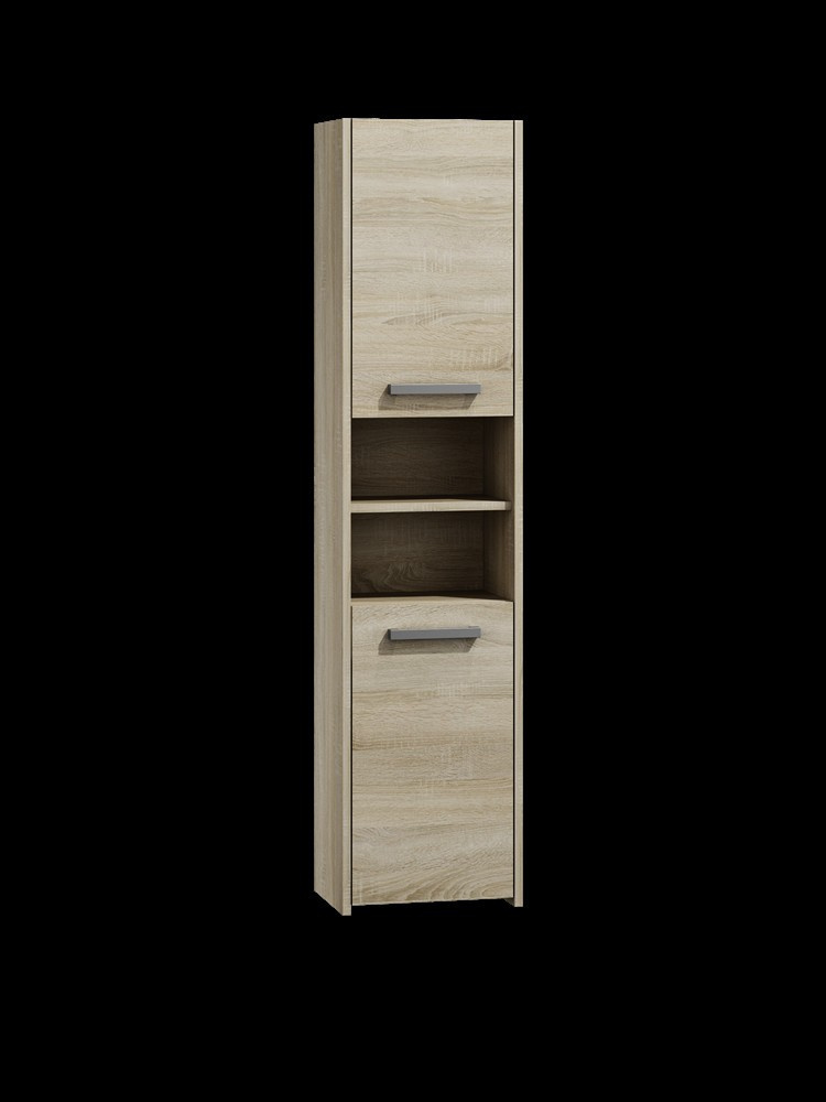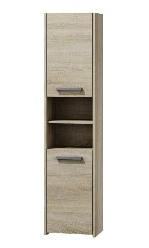 Vysokou koupelnovou skříňku Saly v minimalistickém designu ocení milovníci jednoduchosti a elegance. Je vyrobená ze snadno udržovatelného lamina, hrany jsou povrchově upravené ABS plastem - vyznačuje se vysokou mechanickou a chemickou odolností.