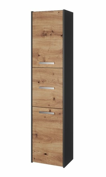 Vysokou koupelnovou skříňku Saly v minimalistickém designu ocení milovníci jednoduchosti a elegance. Je vyrobená ze snadno udržovatelného lamina, hrany jsou povrchově upravené ABS plastem - vyznačuje se vysokou mechanickou a chemickou odolností.