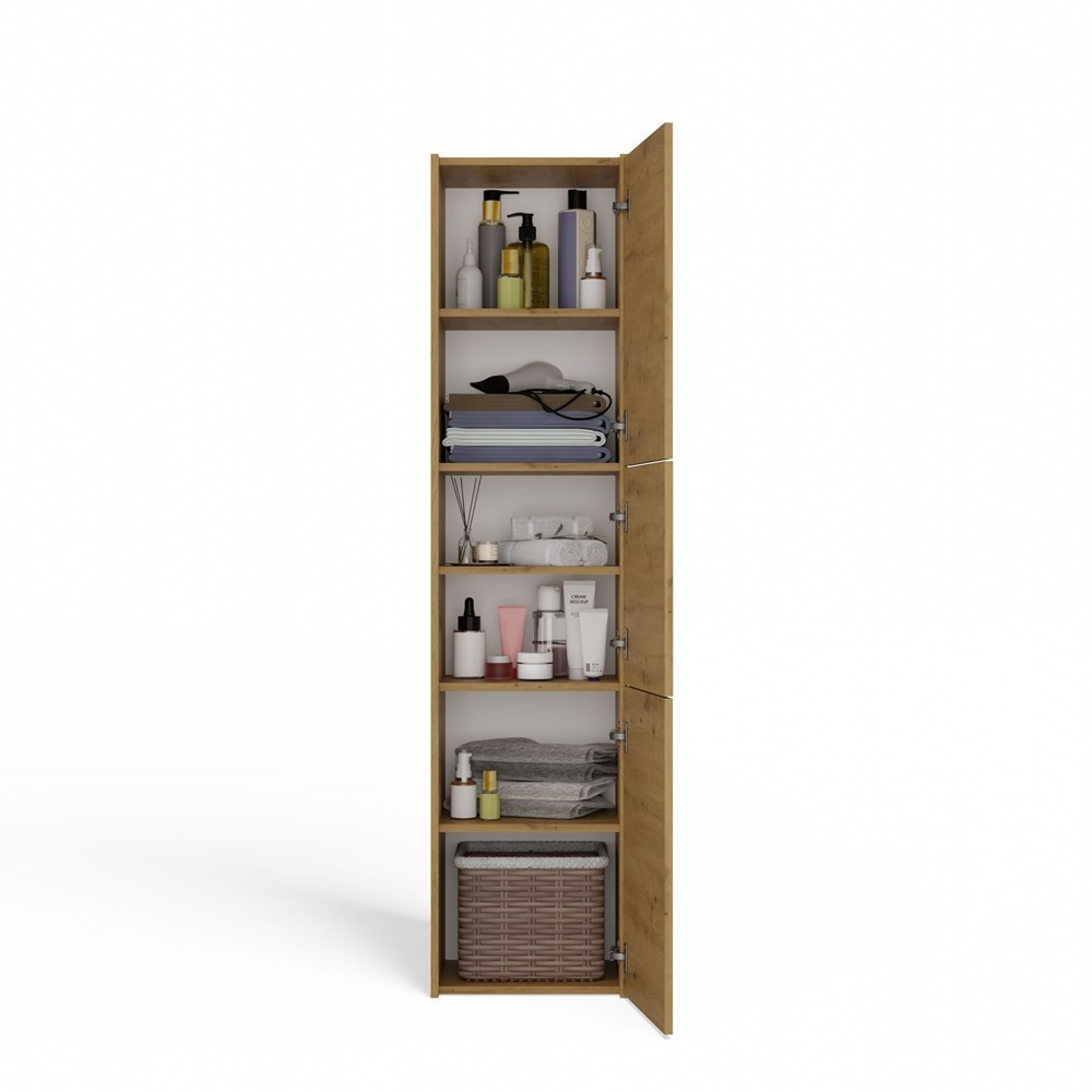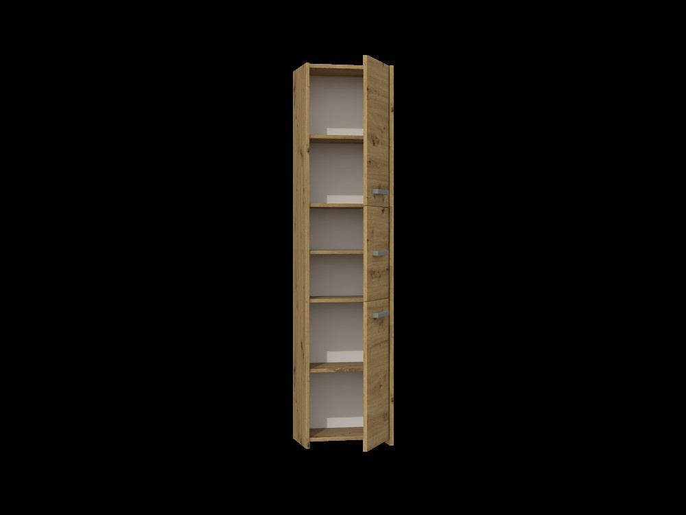 Vysokou koupelnovou skříňku Saly v minimalistickém designu ocení milovníci jednoduchosti a elegance. Je vyrobená ze snadno udržovatelného lamina, hrany jsou povrchově upravené ABS plastem - vyznačuje se vysokou mechanickou a chemickou odolností.