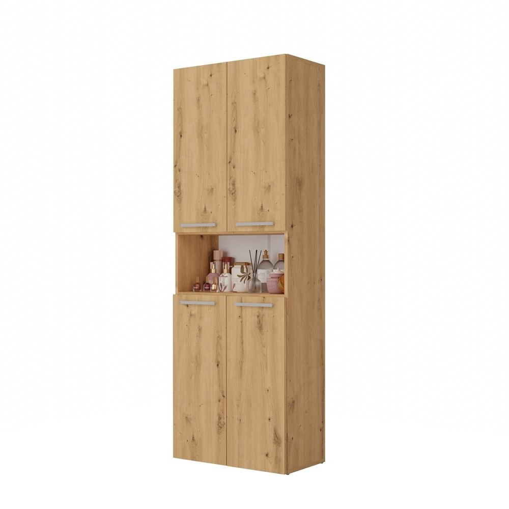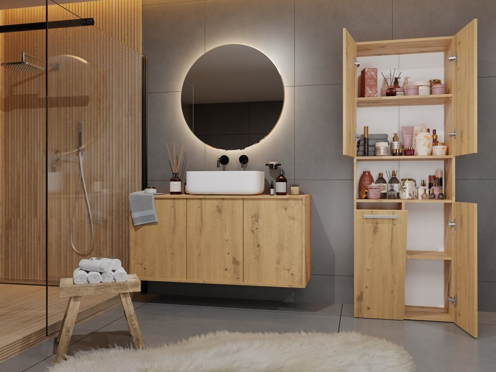 Stylová skříňka Noeli vám díky praktickému úložnému prostoru pomůže vytvořit dokonale organizovanou a útulnou koupelnu. Nadčasový design splní očekávání všech, kteří oceňují kombinaci jednoduchosti a elegance. Skříňka je vyrobená ze snadno udržovatelného lamina, hrany jsou povrchově upravené ABS plastem (vyznačuje se vysokou mechanickou a chemickou odolností).
