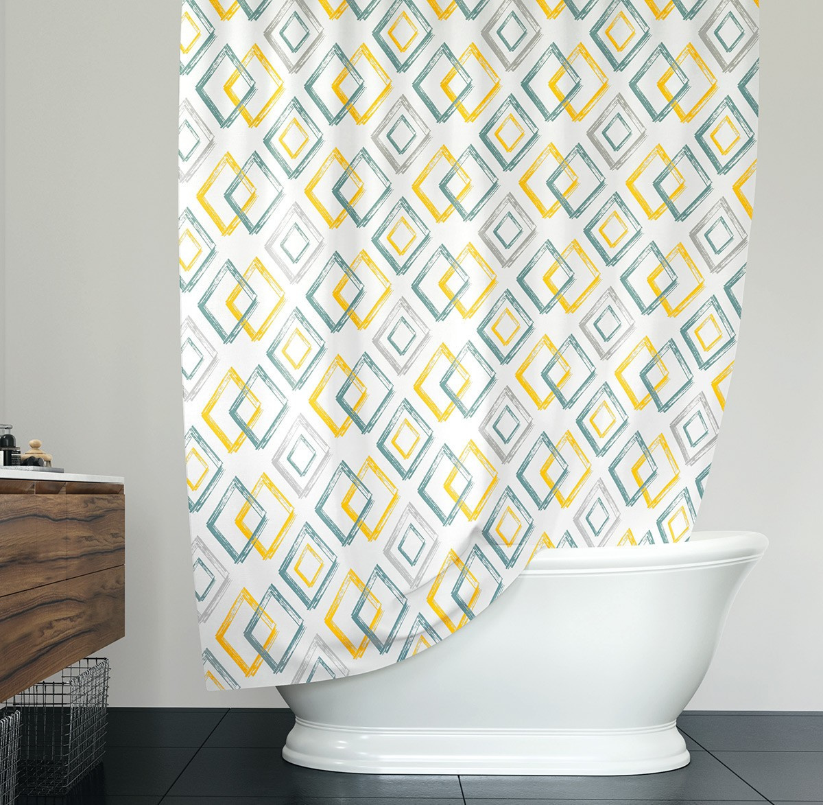 Koupelnové závěsy jsou vyrobeny z kvalitní polyesterové tkaniny, dlouhodobě voděodolné. Součástí každého balení je 12 ks závěsných kroužků k uchycení. Závěsy nabízíme v různých dezénech a budou ozdobou každé koupelny.