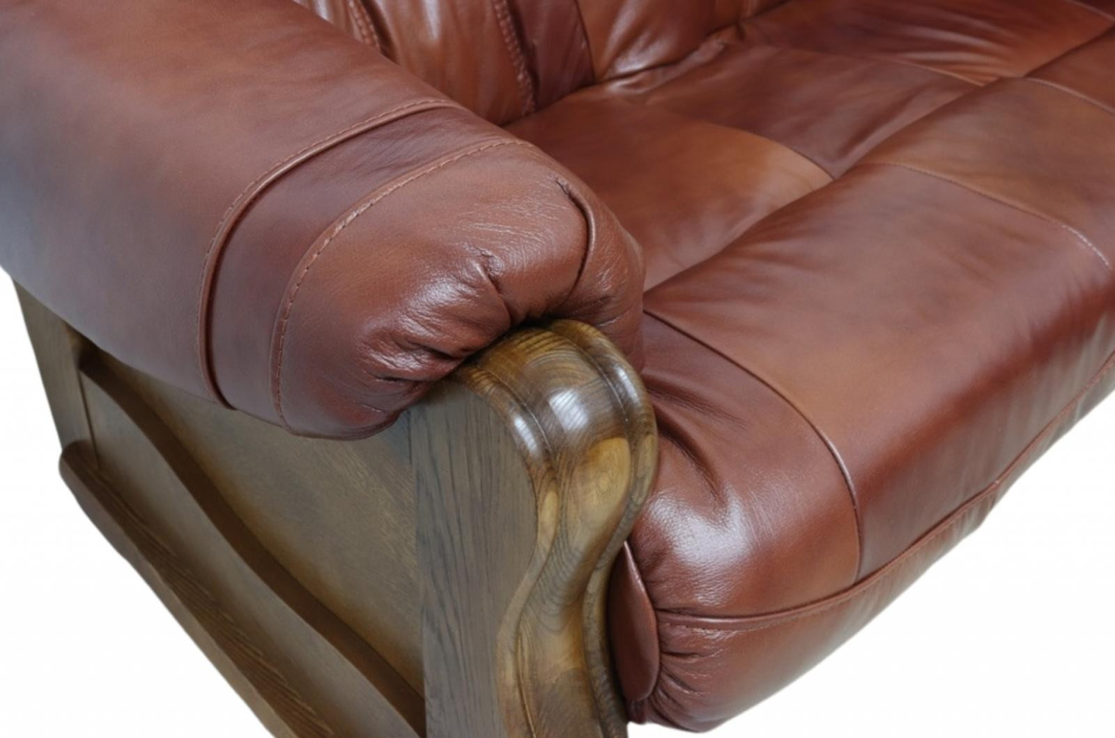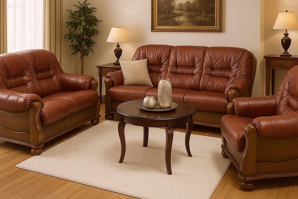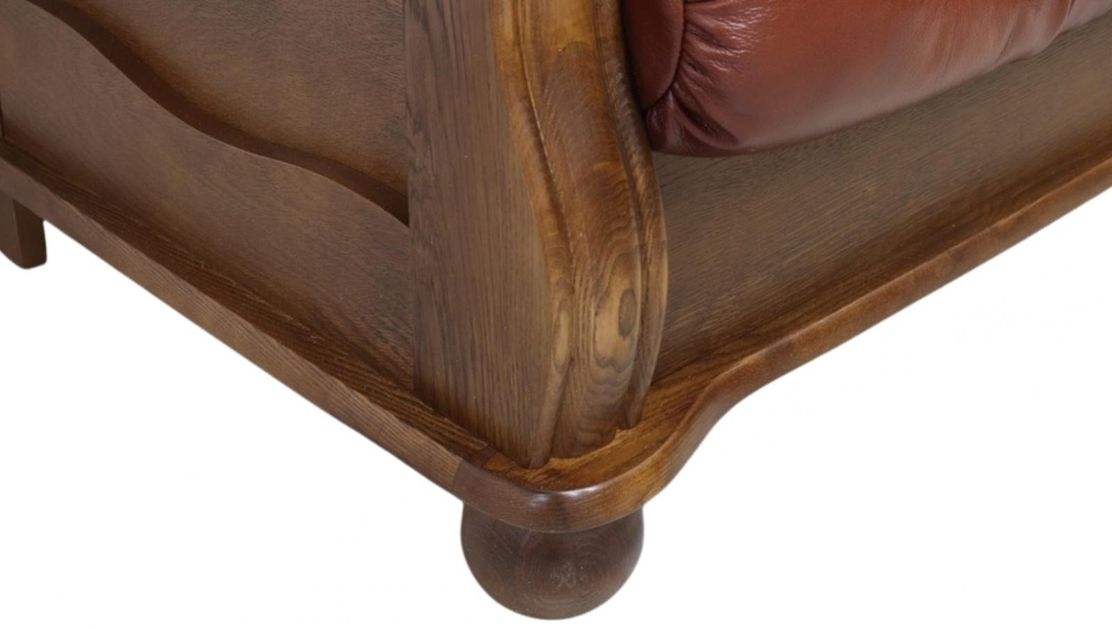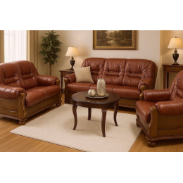 Stylová sedací souprava Royal nadchne každého, kdo má v oblibě rustikální nábytek. Její precizní a kvalitní zpracováním Vám zaručí luxus a pohodlí. Jakmile se do ní jednou usadíte, nebude se Vám chtít vstát. Polstrování sedací soupravy je vyrobené z kvalitní hovězí kůže. Konstrukce je vyrobená z masivního dubového dřeva a je vhodná i k umístění do prostoru. Sedací souprava je rozkládací. V případě potřeby ji jednoduše rozložíte k občasnému přespání Vaší návštěvy. Kůži je nutné čistit pouze za pomocí speciálních prostředků na čištění a konzervaci přírodních kůží, dřevo je třeba čistit suchým měkkým hadříkem. Vyobrazené dopňky a dekorace nejsou v ceně.