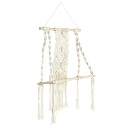 A Boho polc egy pamutból készült, kötött szerkezet és fenyő polcok kombinációja. A makramé stílusú fonott polc illik a természetes, világos belső térbe. Maximális terhelés: 5 kg
