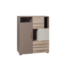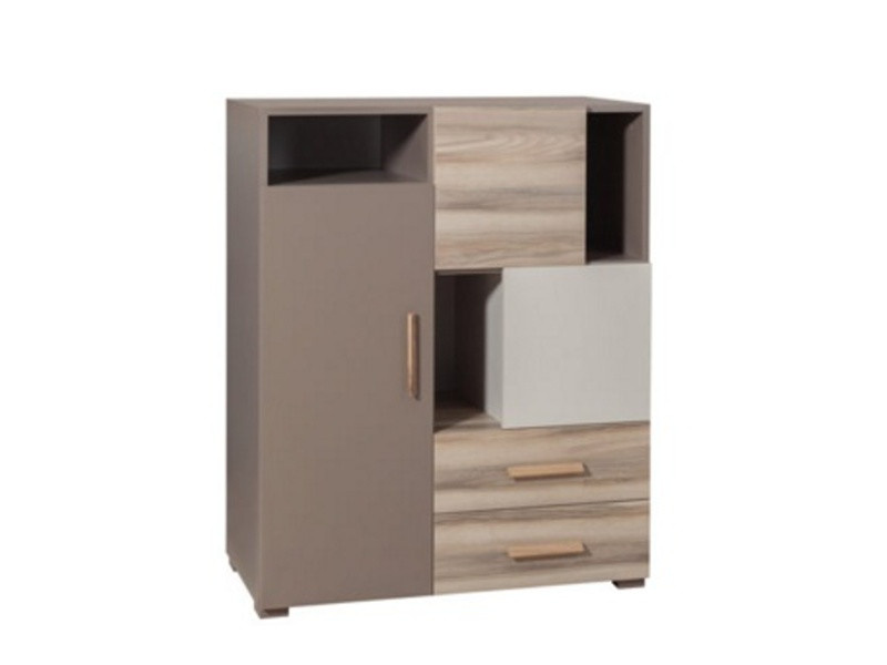 karcálló és a bútor élei tartós PVC furnérral vannak ellátva a mindennapi használatra.A bútorokhoz kiváló minőségű vasalatot használnak az ajtókhoz és a fiókokhoz. Ez a bútor pezsgő, Ladoga kőris és szürke szarvasgomba színek kombinációjában készül.