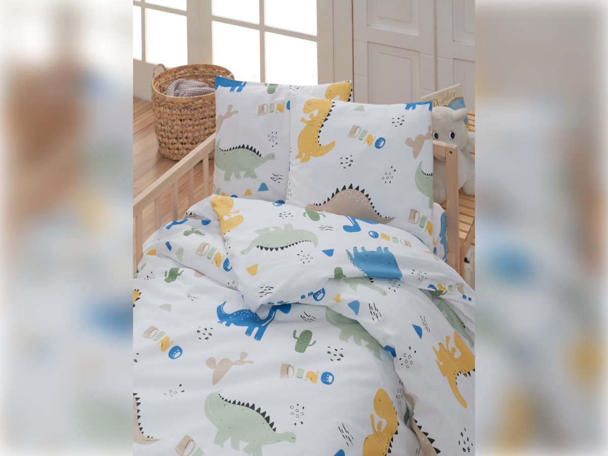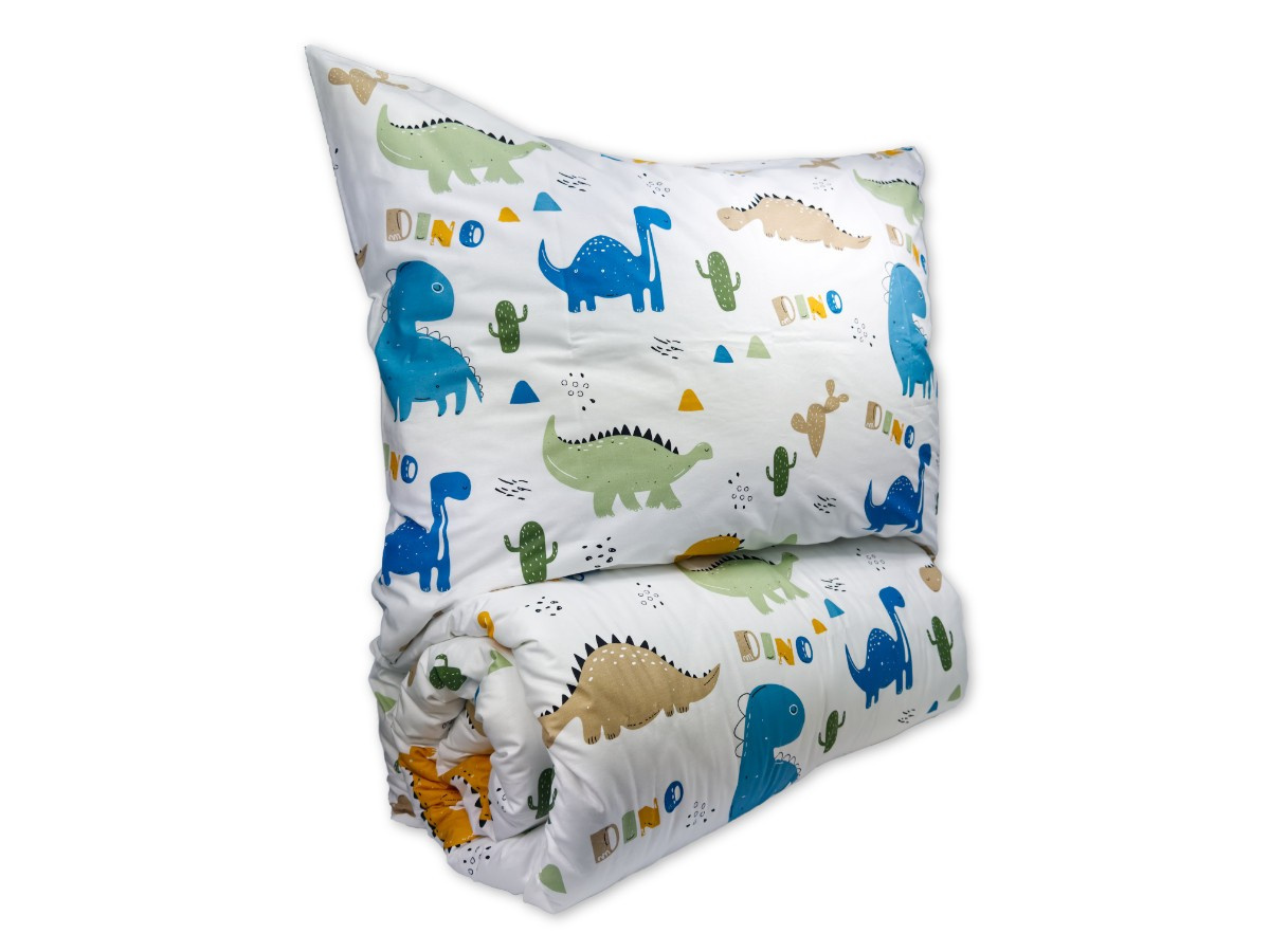 Krepové dětské povlečení do malé postýlky 90x135, 45x60 cm Dino nitěný knoflík