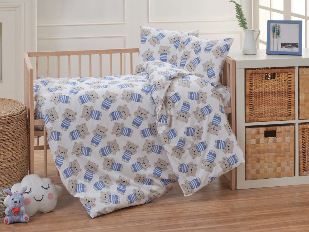 Krepové dětské povlečení do malé postýlky 90x135, 45x60 cm Medvídek