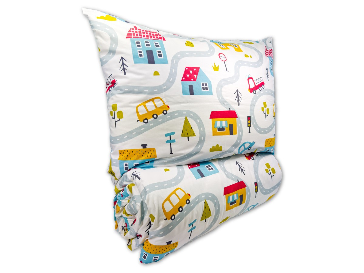 Krepové dětské povlečení do malé postýlky 90x135, 45x60 cm Městečko