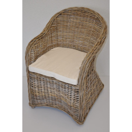 Křeslo Roma má konstrukci vyrobenou z masivních ratanových tyčí ratanu kubu. Výplet je tvořen ratanem kooboo v přírodní šedé barvě. | Materiál: přírodní ratan kubu v přírodní šedé barvě. Ratan kubu se vyznačuje velkou pevností a odolností. Křeslo má díky tomu velice pevnou konstrukci. Velikost křesla je 60x66x88 cm, výška sedu je 50 cm, nosnost 125 kg.