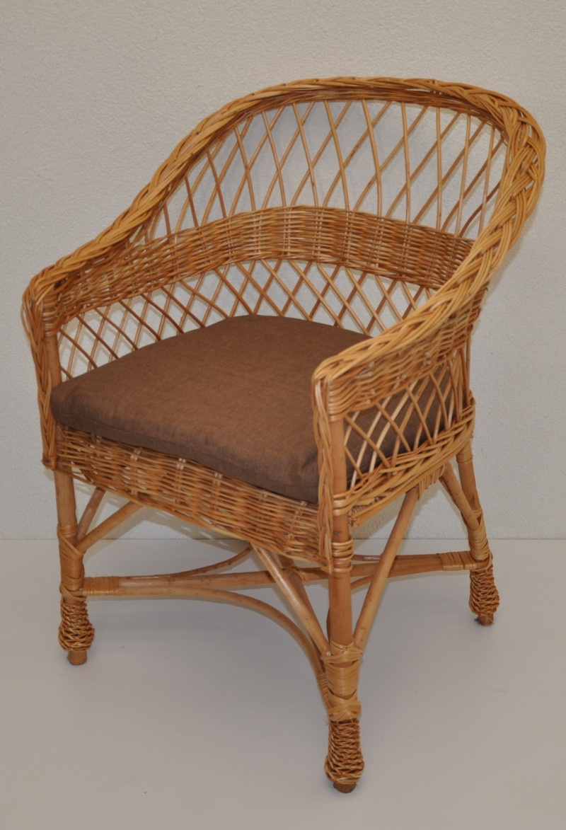 Křeslo San vyrobené z přírodního vrbového proutí...... | Konstrukce křesla San je vyrobena ze silných vrbových tyčí, výplet je tvořen z vrbových proutků. Velikost křesla je 62x63x82 cm. Výška sedu křesla je 42 cm. Nosnost křesla je 100 kg. Polstr na křeslo je vyroben v České republice. Polstr je vyrobený z kvalitní látky a vyznačuje se vysokou kvalitou zpracování. Polstry pro nás vyrábí firma AXIN Cuschions s.r.o., která zaměstnává výhradně místní vyučené švadleny z České republiky. Tímto způsobem se snažíme podporovat výrobu a zaměstnanost v naší republice......