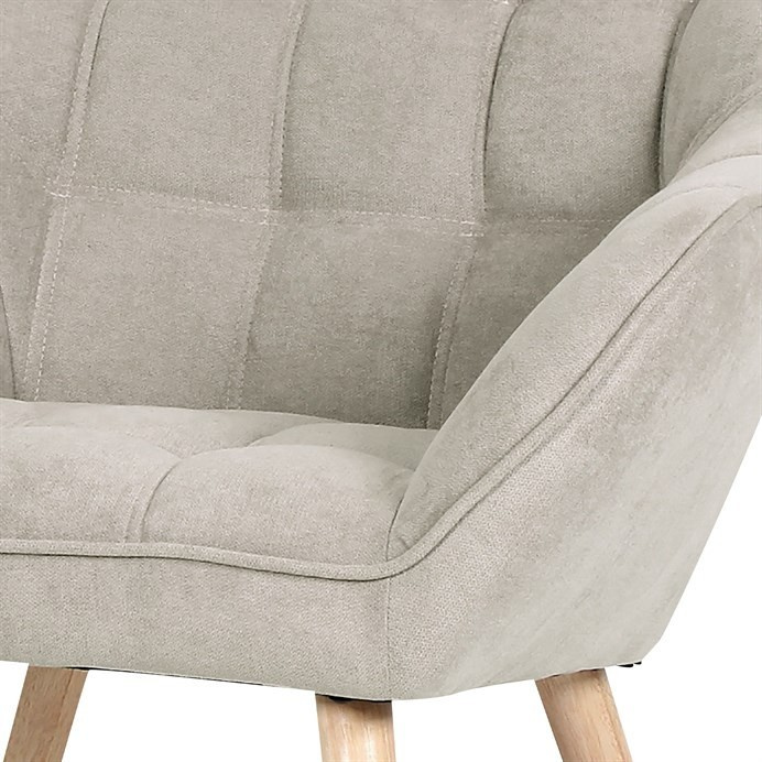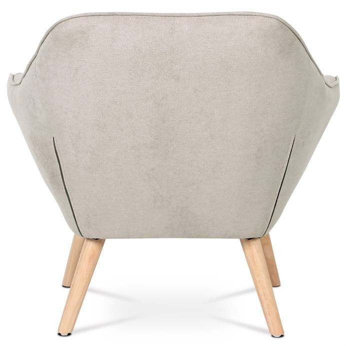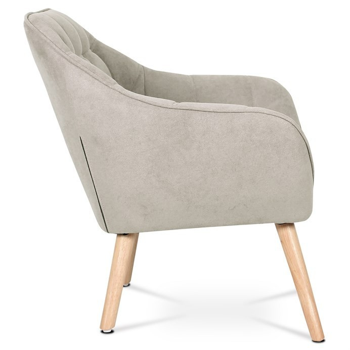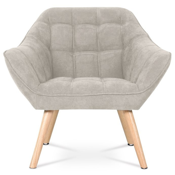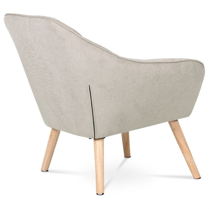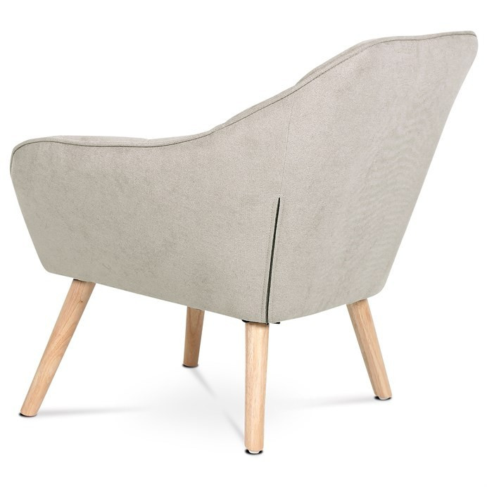 Křeslo s potahem ze šedobéžové látky nabízí příjemný komfort díky měkkému polstrování a designovému prošití, které dodává celku moderní vzhled. Masivní nohy z kaučukovníku zajišťují pevnou a stabilní oporu, přičemž jejich přírodní dřevěný odstín kontrastuje s jemným tónem čalounění. Ergonomicky tvarované opěradlo a široká sedací plocha podporují pohodlné posezení v obývacím pokoji či pracovně. Látkový potah je příjemný na dotek a snadno se udržuje, což přispívá k dlouhodobé použitelnosti. Křeslo je vhodné pro každodenní použití bez rozkládací funkce.
