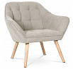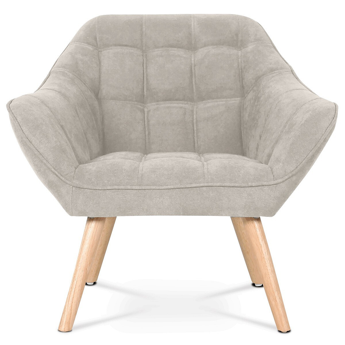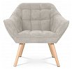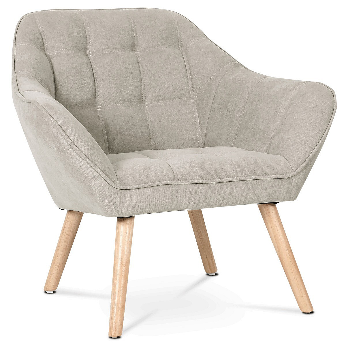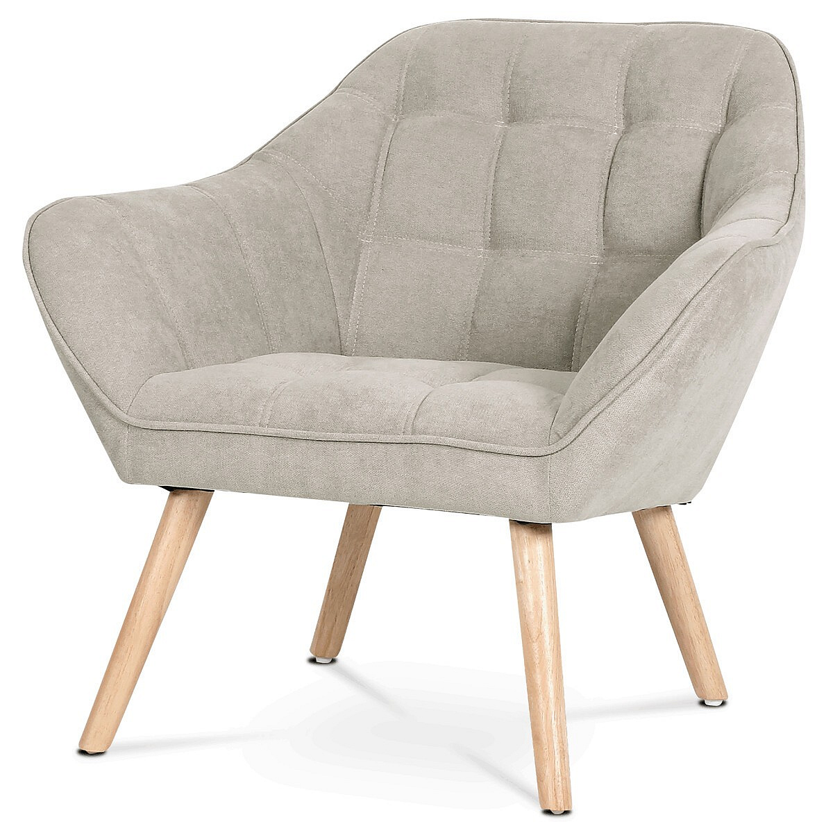 Křeslo s potahem ze šedobéžové látky nabízí příjemný komfort díky měkkému polstrování a designovému prošití, které dodává celku moderní vzhled. Masivní nohy z kaučukovníku zajišťují pevnou a stabilní oporu, přičemž jejich přírodní dřevěný odstín kontrastuje s jemným tónem čalounění. Ergonomicky tvarované opěradlo a široká sedací plocha podporují pohodlné posezení v obývacím pokoji či pracovně. Látkový potah je příjemný na dotek a snadno se udržuje, což přispívá k dlouhodobé použitelnosti. Křeslo je vhodné pro každodenní použití bez rozkládací funkce.
