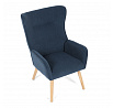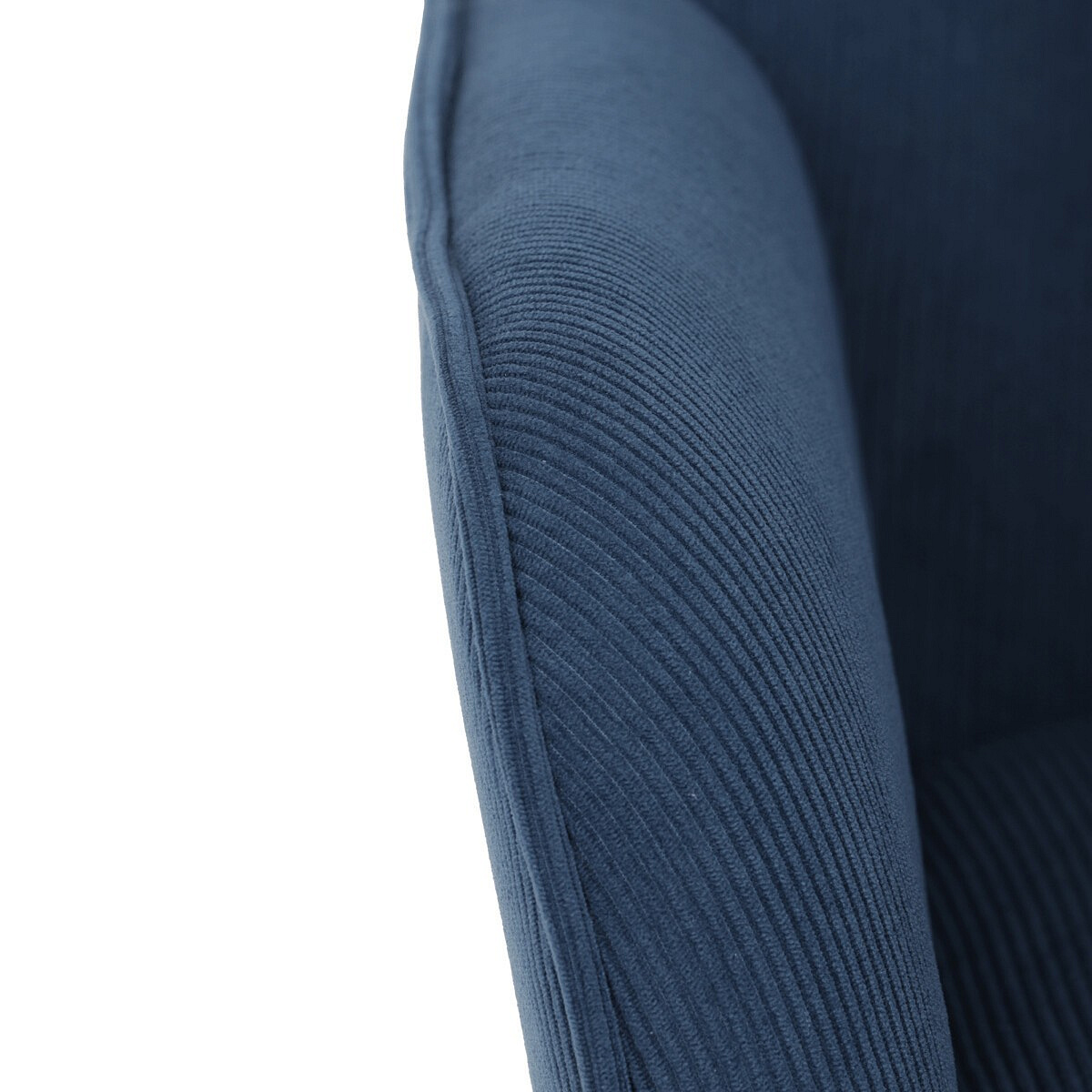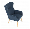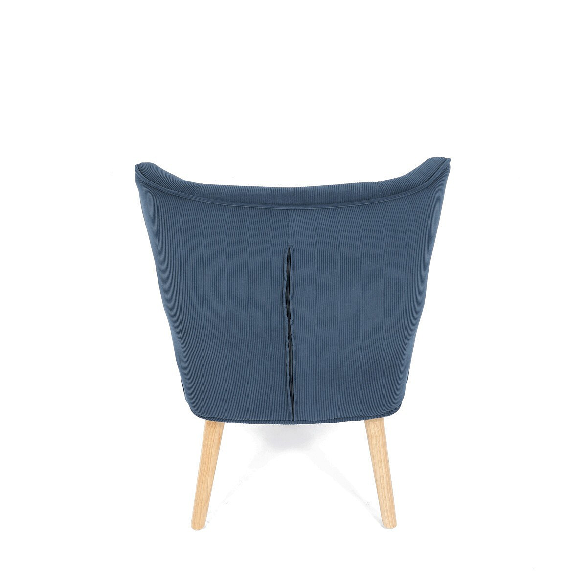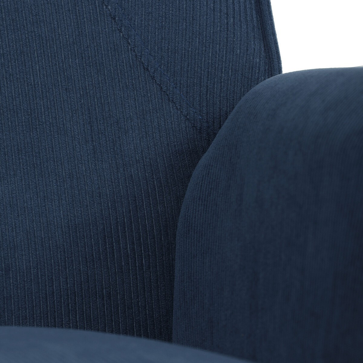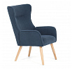 Křeslo typu ušák s potahem z modré manšestrové látky nabízí pohodlné sezení s výrazným vizuálním efektem díky jemné textuře manšestru. Sedák a opěradlo jsou vyplněné měkkou výplní, která zajišťuje komfort při delším posezení. Masivní nohy z kaučukovníku poskytují stabilní a pevnou oporu, přičemž jejich přírodní odstín kontrastuje s tmavě modrým potahem. Ergonomický tvar opěradla s mírně zvýšenými bočnicemi podporuje správnou polohu těla. Křeslo je určeno pro interiéry, kde vynikne jeho kombinace tradičního stylu a kvalitního materiálového provedení.