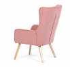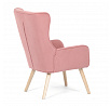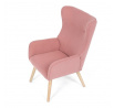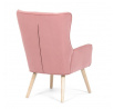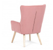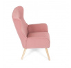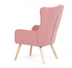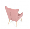 Křeslo s označením ušák je potažené růžovou manšestrovou látkou, která nabízí příjemnou texturu a vizuální efekt. Sedák i opěradlo jsou tvarované pro pohodlné opření těla, přičemž vysoké opěradlo s křídly poskytuje podporu hlavy a ramen. Masivní nohy z kaučukovníku zajišťují stabilitu a pevnost celého křesla, přičemž jejich přírodní odstín ladí s jemným tónem potahu. Díky pevnému provedení a kvalitnímu materiálu je křeslo vhodné pro relaxaci v obývacím pokoji nebo čtecím koutě.