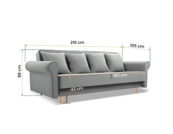 A KRYSTYNA kanapé praktikus kinyitható mechanizmussal van felszerelve, amely lehetővé teszi, hogy könnyen és gyorsan átalakítsa a kanapét egy kényelmes, 183 x 122 cm méretű ággyá. Ez ideális váratlan látogatásokhoz vagy azok számára, akik szeretnék a kényelmes alvás lehetőségét közvetlenül a nappaliban. Ezenkívül a kanapé tárolóhellyel van felszerelve, amely elegendő helyet biztosít ágyneműk, párnák vagy más szükséges dolgok tárolására.