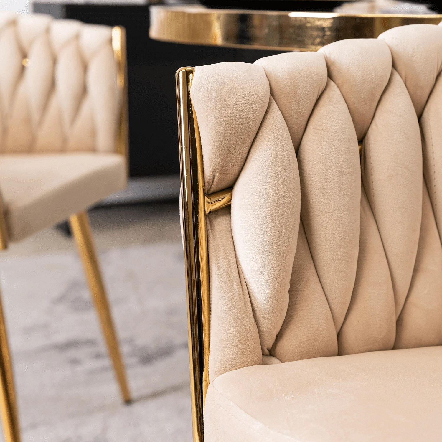 Krzesło CAPI Kremowe Plecione Welurowe