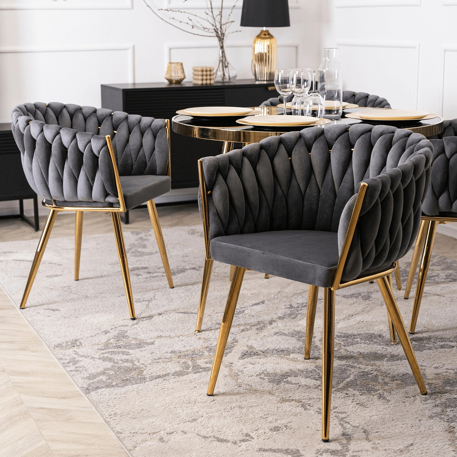 Krzesło CAPI Szare Plecione Welurowe