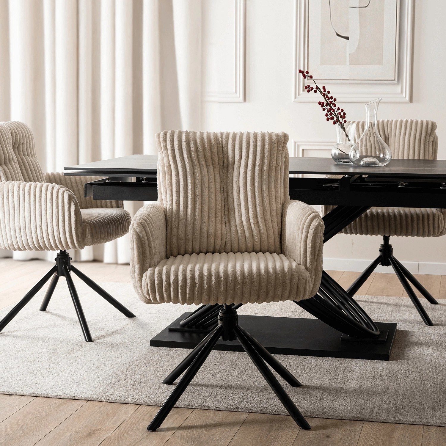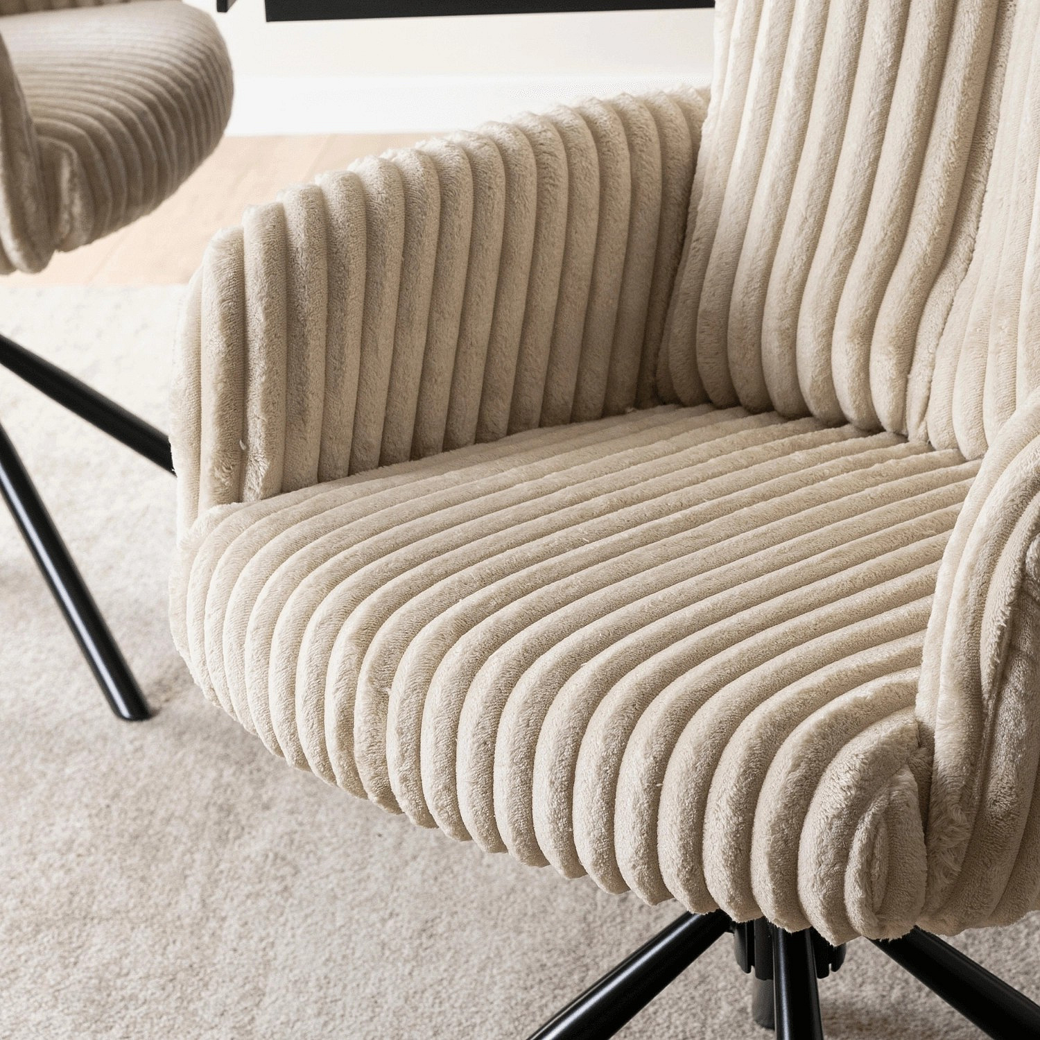 Krzesło Obrotowe do Salonu JUNE Beżowe Sztruksowe
