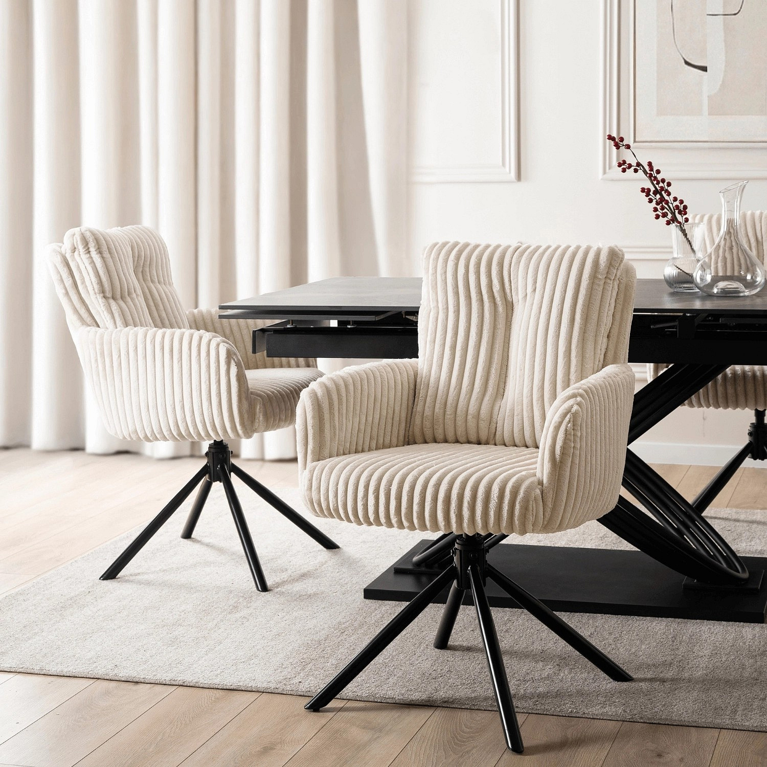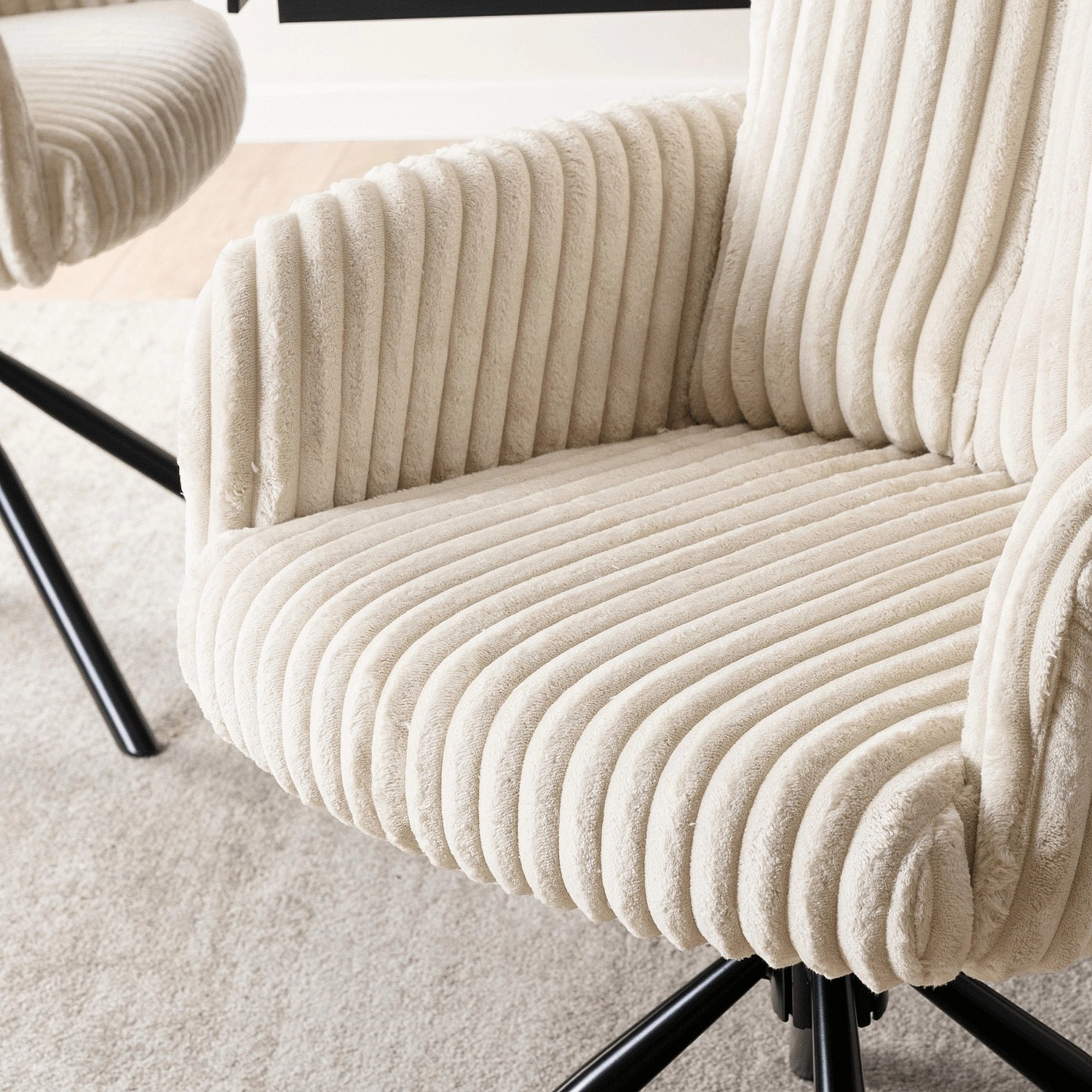 Krzesło Obrotowe do Salonu JUNE Kremowe Sztruksowe