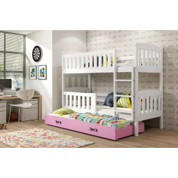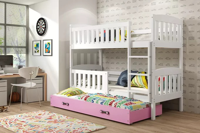 KUBUŚ 3 OSOBOWE RAMA BIAŁY SZUFLADA RÓŻOWY 90 X 200 KPL