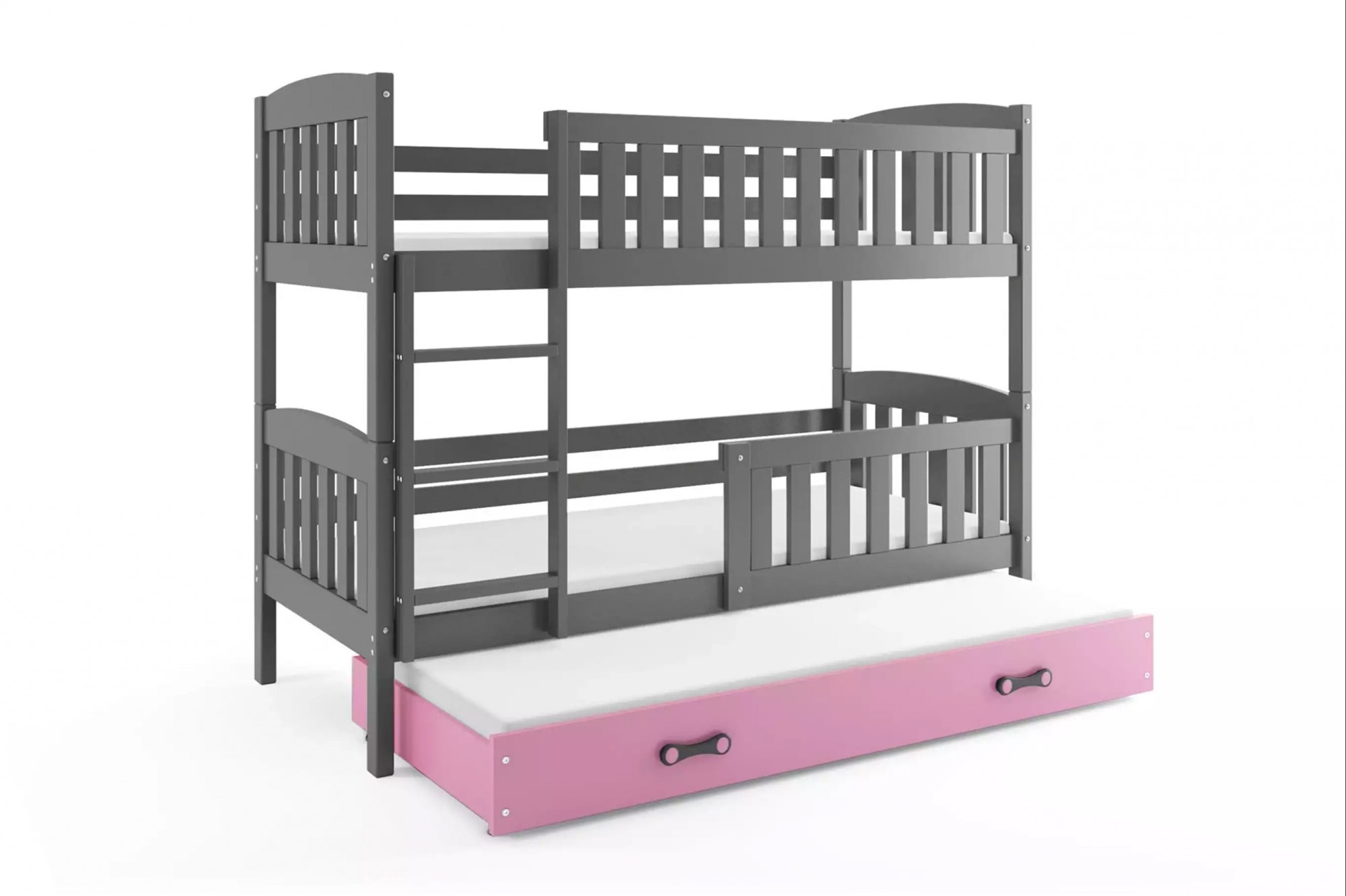 KUBUŚ 3 OSOBOWE RAMA GRAFIT SZUFLADA RÓŻOWY 90 X 200 KPL