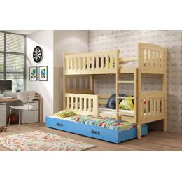 KUBUŚ 3 OSOBOWE RAMA SOSNA SZUFLADA NIEBIESKI BEZ MATERACY 90 X 200 KPL