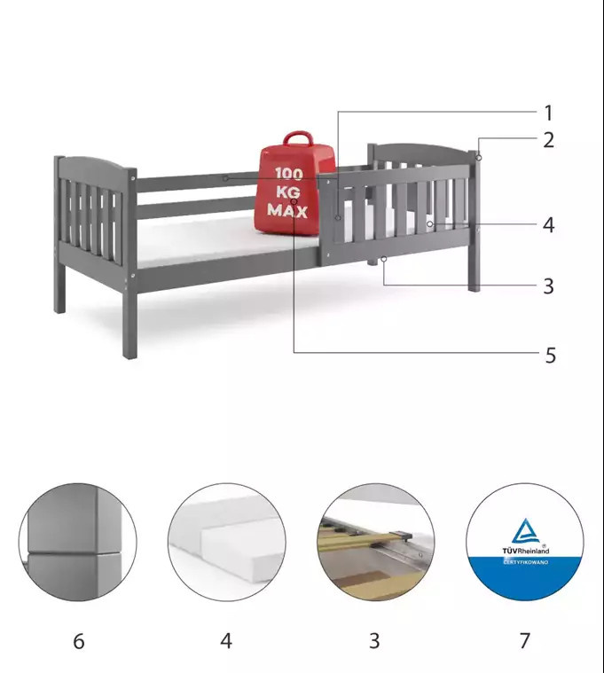 - Certyfikowane łóżko - jakość i bezpieczeństwo zgodnie z normami TUV.