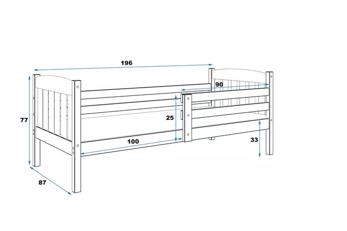 - Rama łóżka - wykonana z drewna sosnowego, pomalowana lakierem wodnym.