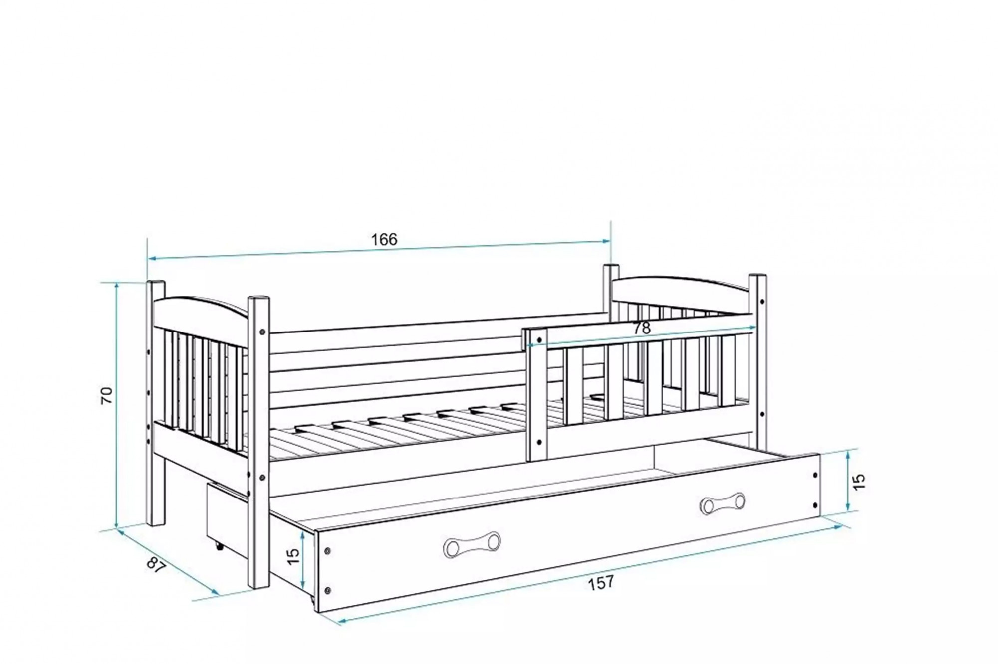- Rama łóżka - wykonana z drewna sosnowego, pomalowana lakierem wodnym.