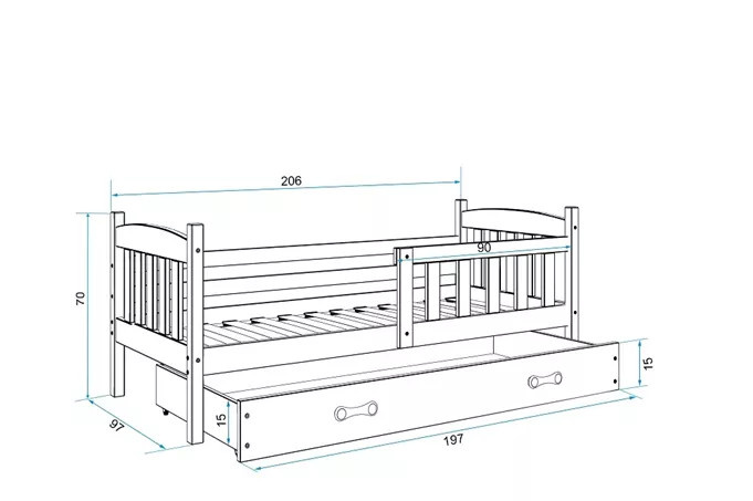 KUBUŚ PARTEROWE RAMA SOSNA SZUFLADA GRAFIT BEZ MATERACY 90 X 200 KPL