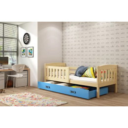 KUBUŚ PARTEROWE RAMA SOSNA SZUFLADA NIEBIESKI BEZ MATERACY 80 X 190 KPL