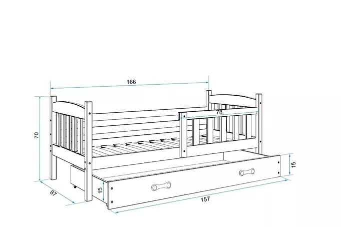 KUBUŚ PARTEROWE RAMA SOSNA SZUFLADA ZIELONY BEZ MATERACY 80 X 160 KPL