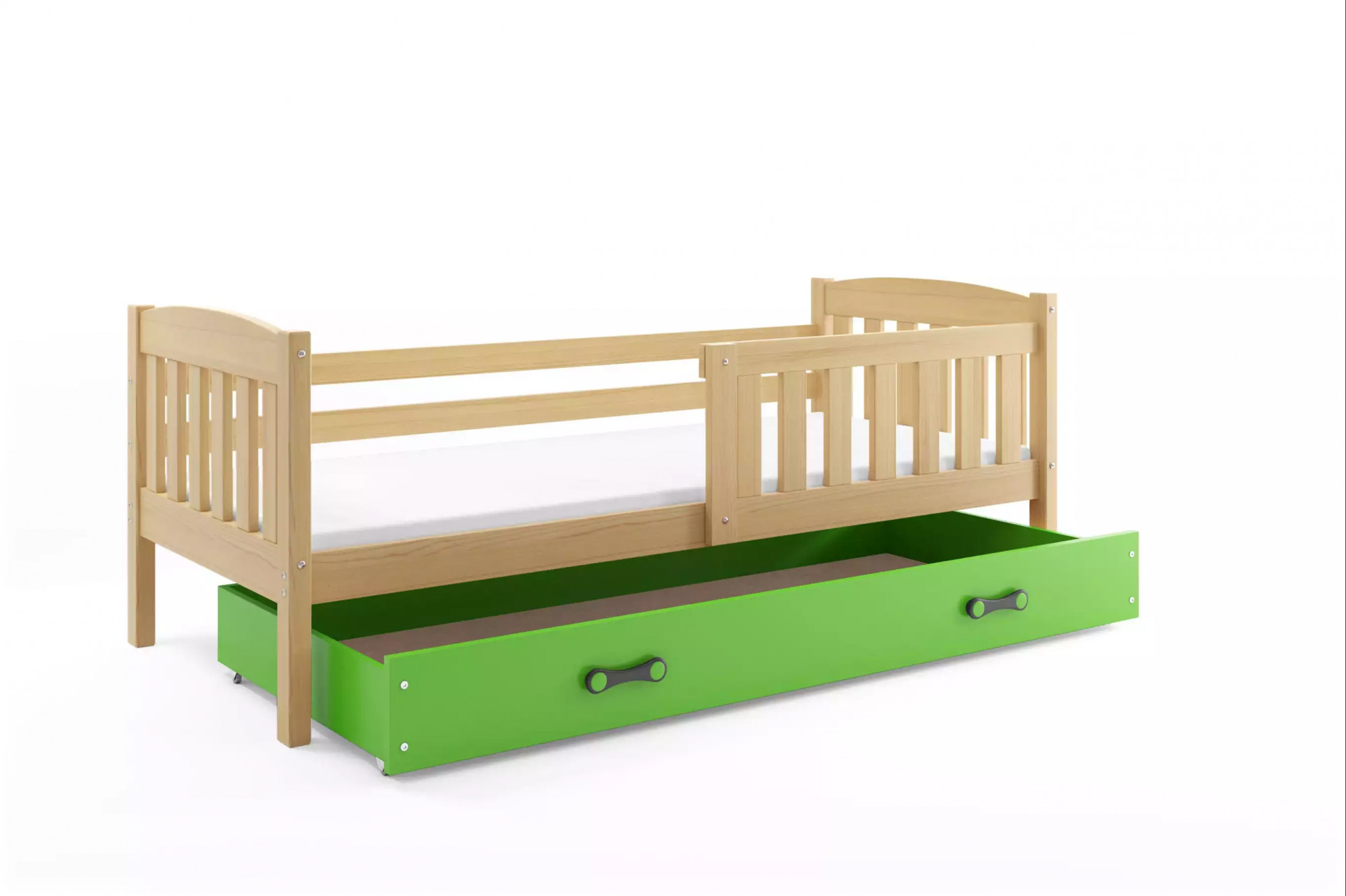 KUBUŚ PARTEROWE RAMA SOSNA SZUFLADA ZIELONY BEZ MATERACY 90 X 200 KPL