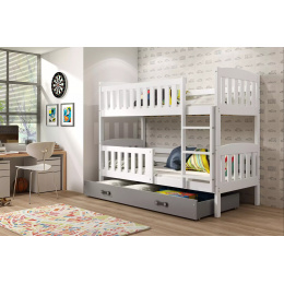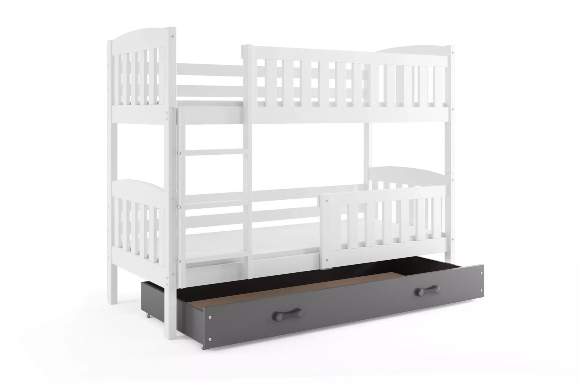 KUBUŚ PIĘTROWE RAMA BIAŁY SZUFLADA GRAFIT BEZ MATERACY 90 X 200 KPL