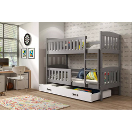 KUBUŚ PIĘTROWE RAMA GRAFIT SZUFLADA BIAŁY BEZ MATERACY 90 X 200 KPL