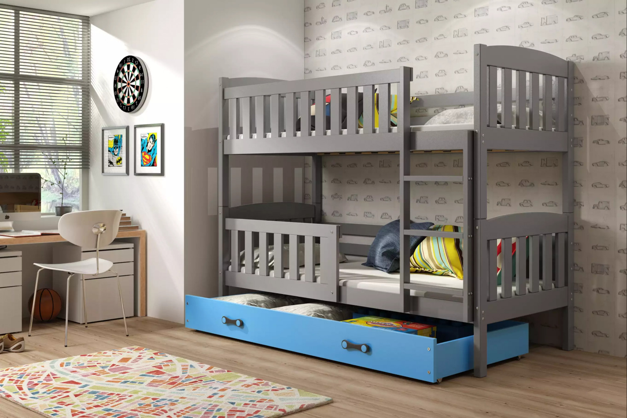 KUBUŚ PIĘTROWE RAMA GRAFIT SZUFLADA NIEBIESKI BEZ MATERACY 90 X 200 KPL